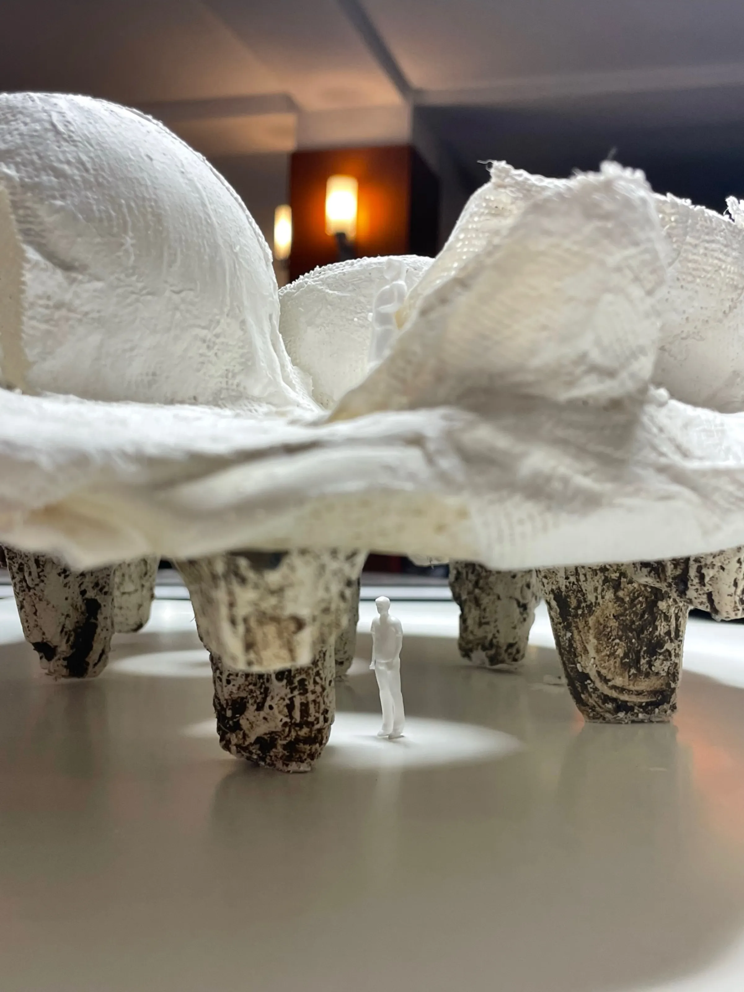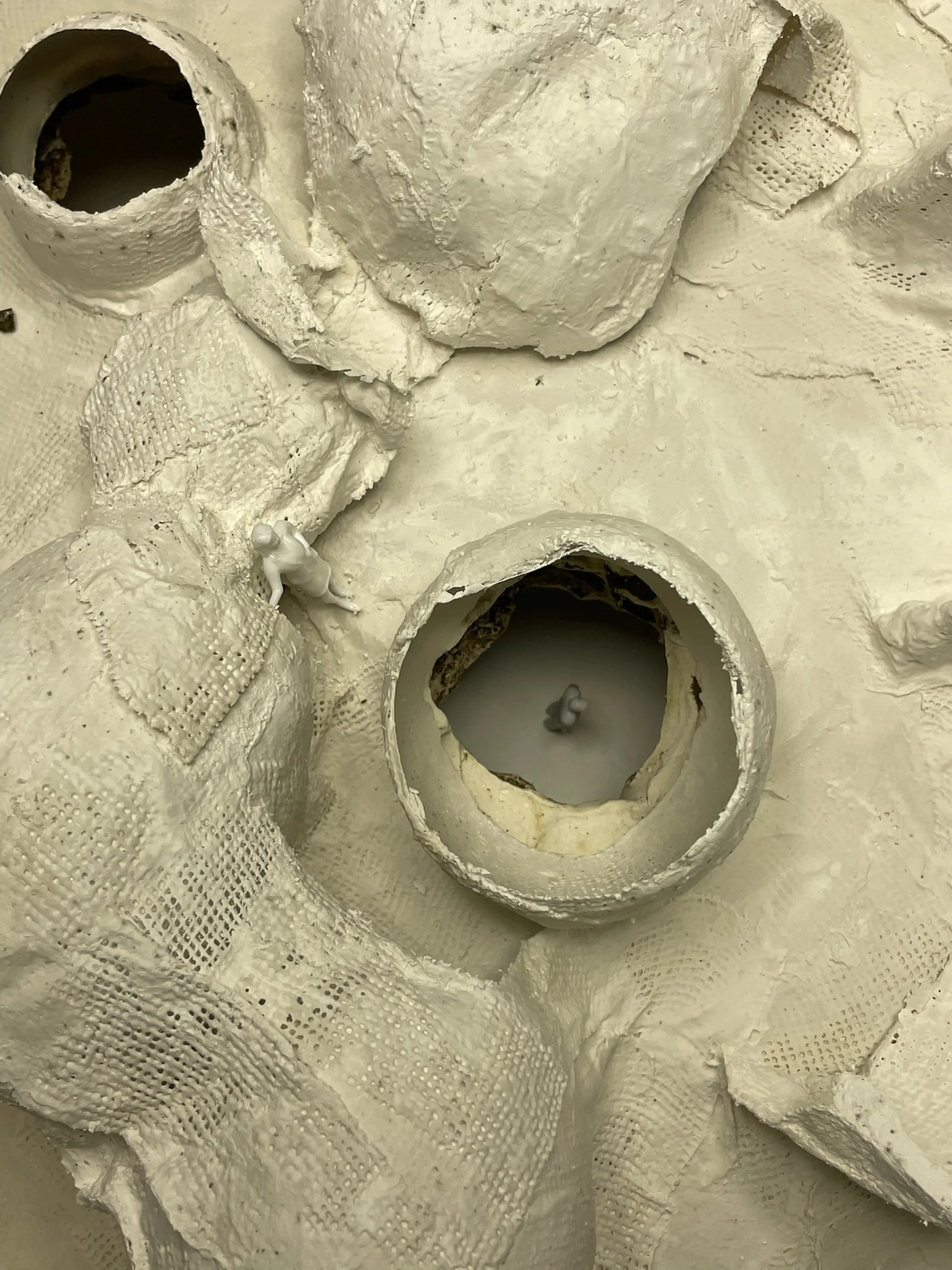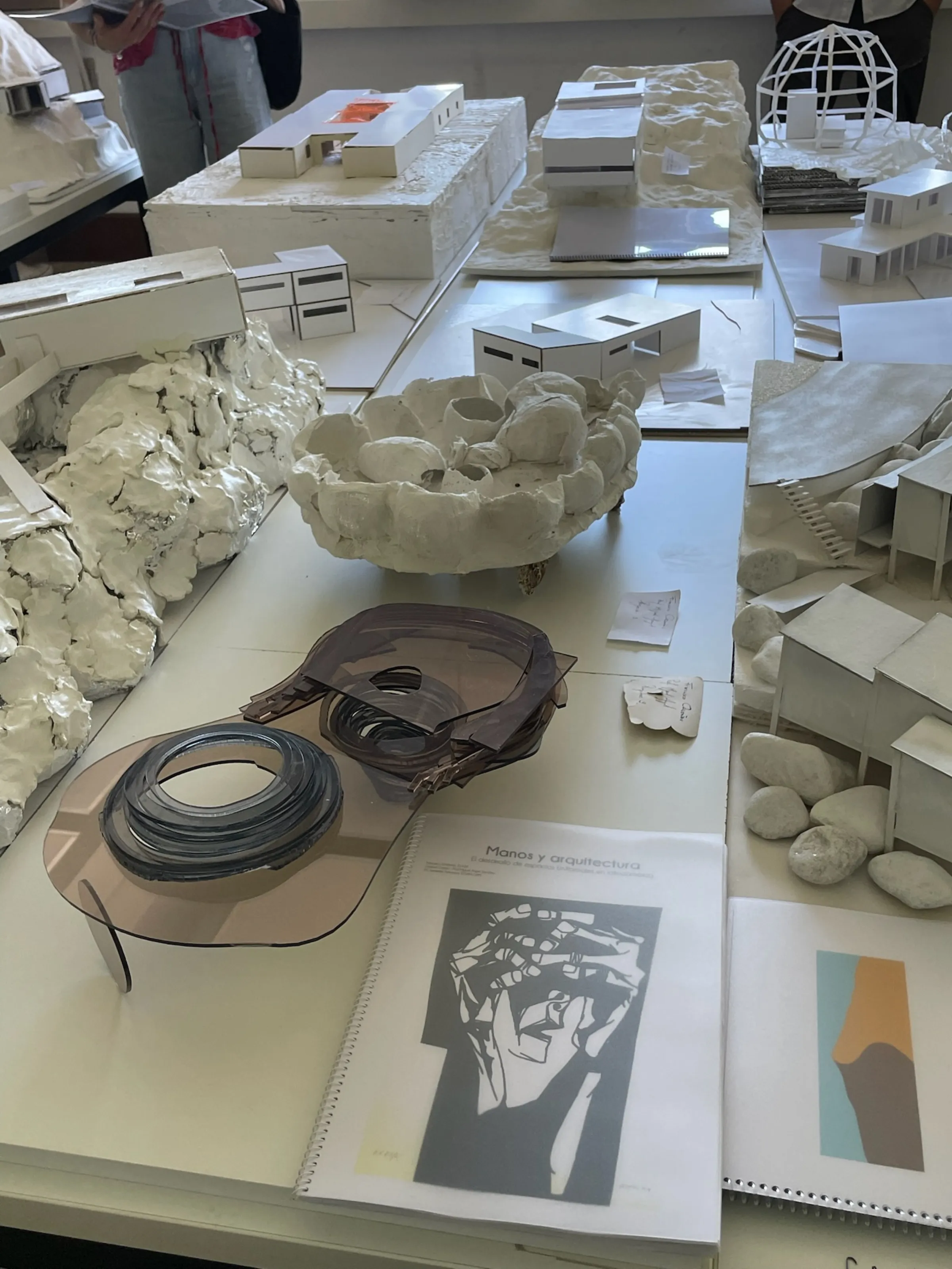 Proyecto teórico. Estructura dual con dos sistemas habitacionales complementarios. Paredes compartidas como límite entre ambos mundos. Geometría palindrómica: lectura bidireccional del espacio. Maquetas conceptuales y documentación gráfica expuesta en Matadero Madrid.