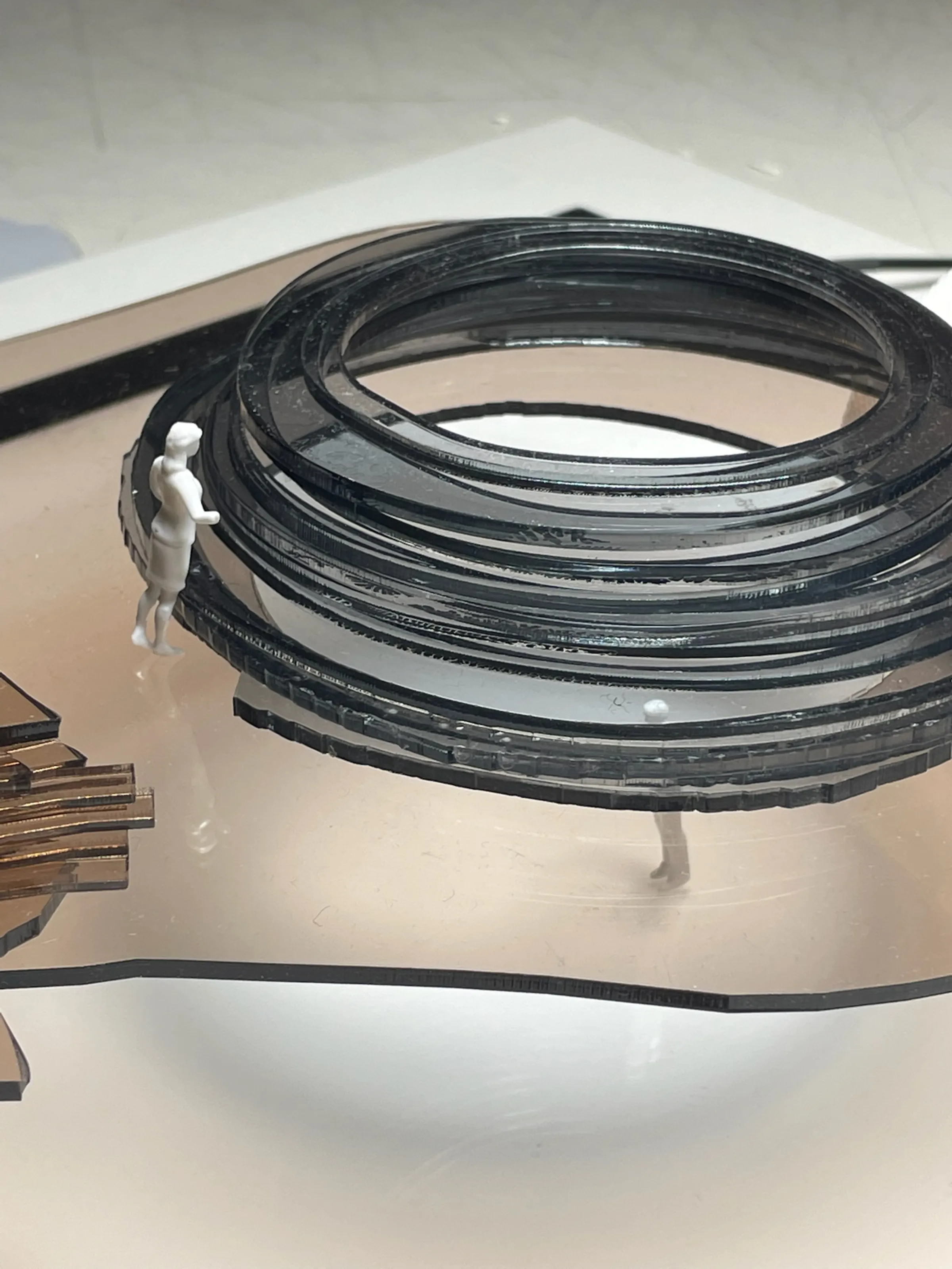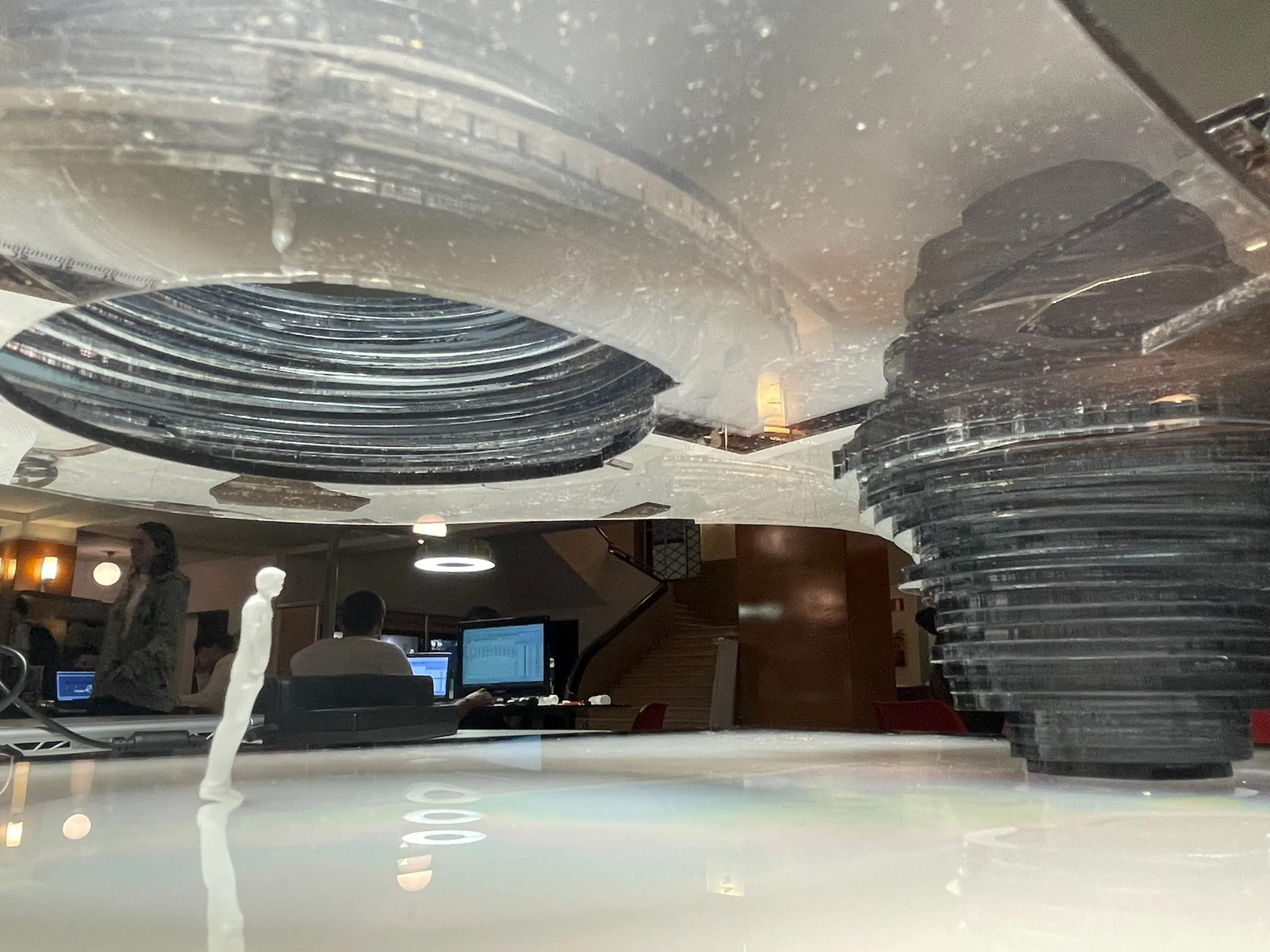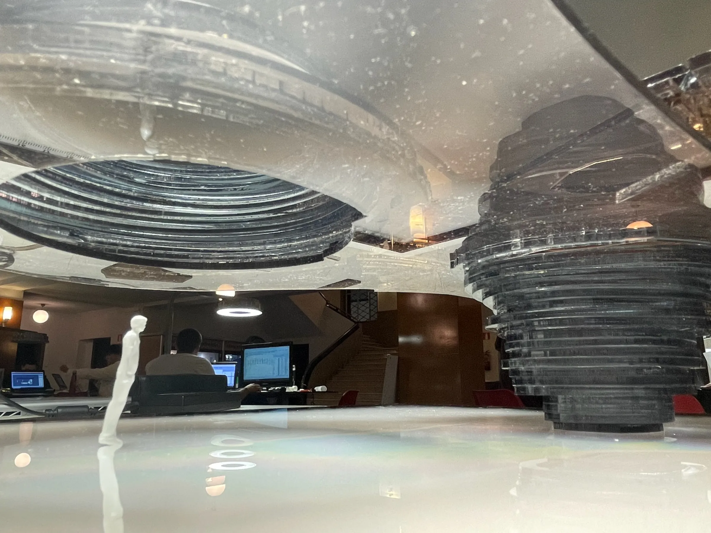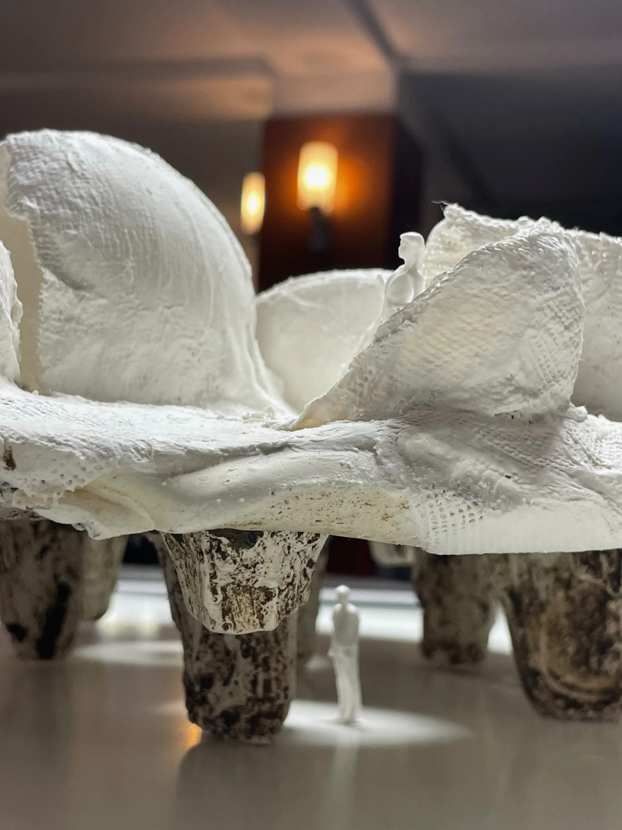Proyecto teórico. Estructura dual con dos sistemas habitacionales complementarios. Paredes compartidas como límite entre ambos mundos. Geometría palindrómica: lectura bidireccional del espacio. Maquetas conceptuales y documentación gráfica expuesta en Matadero Madrid.