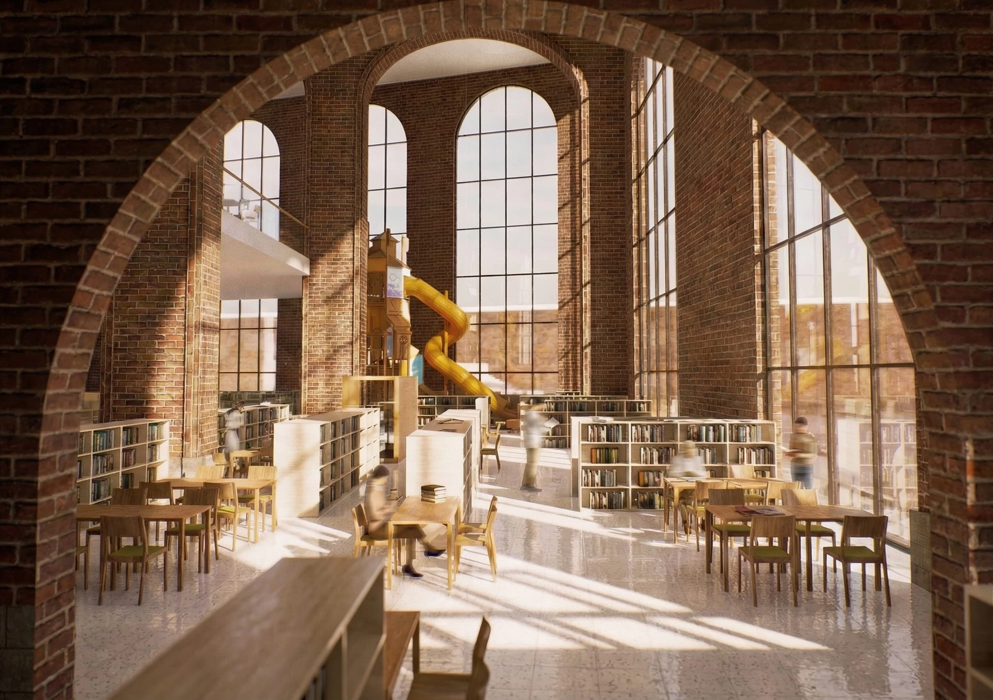 Propuesta de biblioteca pública para Tampere, una ciudad industrial finlandesa que creció enormemente en el siglo XIX y cuyo centro histórico está construido con ladrillo y arcos. Desarrollado en 2024.
